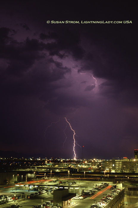 Lightning strikes over downtown Phoenix, just west of Sky Harbor