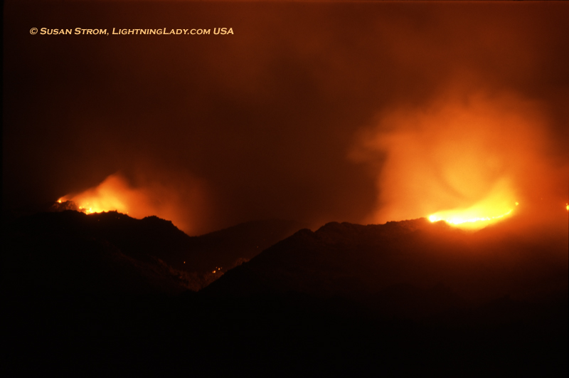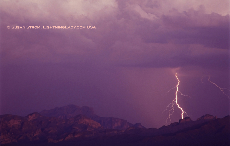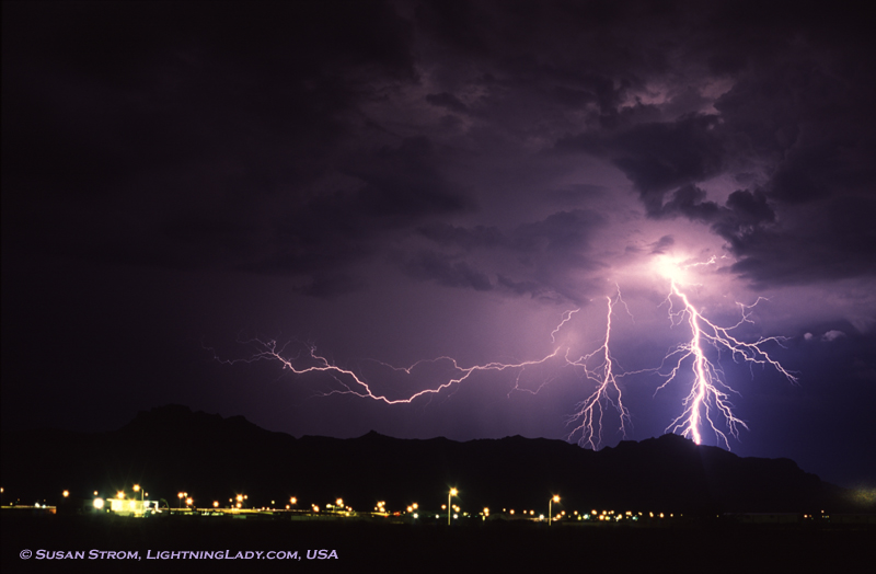 Like a giant sparkler, a dramatic strike bursts on the scene over Red Mountain,
