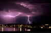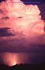 Nighttime brings an amethyst-colored cloud sparkling with lightning