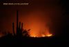 A huge, branching flash illuminates a saguaro cactus-covered ridge.
